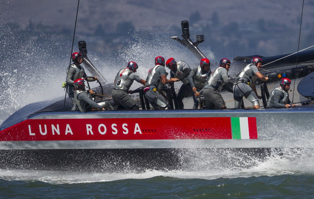 Still alive: Luna Rossa è ancora viva dopo la settima regata delle finali Louis Vuitton Cup. E’ successo che il vento era troppo forte per disputare la ultima decisiva regata e il comitato ha mandato tutti a casa. Così dal mare è arrivato un giorno di vita in più per Luna Rossa e per la finale sfidanti. Fin dal mattino si sapeva che sarebbe molto probabilmente successo così, il vento aveva pulito in fretta il cielo sempre nebbioso di San Francisco, lasciando libero il sole per il pubblico che segue sia dalle rive che dal mare. Ancora una volta la regata si è giocata sulla grande velocità di Emirates Team New Zealand, che con alcune modifiche notturne, probabilmente in vista del vento forte è apparsa ancor più mostruosamente in forma e veloce. Il traguardo che tutti si aspettano, il foiling di bolina, è ormai una realtà che spinge lo speedometro a 30 nodi con un rapporto con lo scarroccio che diventa conveniente in VMG. Non serve criticare la partenza di Luna Rossa, sempre un po’ lenta ad accelerare, la differenza di velocità è troppo evidente. I kiwi vogliono vincere: è una missione di Stato, davvero, perché la Coppa da loro porta economia non è solo il palcoscenico per un ricco ai primi posti della classifica di Forbes. In una giornata di vento forte le barche hanno segnato record di ogni tipo, hanno chiuso il percorso in 23 minuti 38 secondi, il ritardo di Luna Rossa è di 1 minuto e 58 secondi, la velocità media di ETNZ è di 29,24 nodi, quella di Luna Rossa di 27,27. I kiwi hanno stabilito il record di velocità della Louis Vuitton Cup toccando i 47,18 nodi, Luna Rossa è arrivata a 43,46. I nostri eroi sperano ancora, come spiega il tattico Francesco “Checco” Bruni: “Noi combattiamo fino all’ultimo momento, nello sport non si sa mai. Dobbiamo affrontare l’ultima regata con la testa sulle spalle, sarà dura ma noi combattiamo. Le possibilità, lo ammettiamo, sono poche, ma l’altro giorno sono andati con la prua giù e in un istante potevano giocarsi tutto, la finale, la contro finale e tutto il resto. Noi ci sentiamo vivi fino alla fine”. Spiega poi quello che ha visto sul campo: “Emirates è molto veloce di bolina, e non mi sorprenderebbe vedere Oracle passare qualche brutta esperienza. Oggi riuscivano a navigare in foiling a 30 nodi. Anche noi possiamo andare in foliling di bolina, il problema è che puoi andare in foiling a 25 o o farlo 30 nodi, esiste insomma una qualità del foiling. Quello che stanno facendo i kiwi è incredibile”. Racconta dei progressi di Luna Rossa: “Il gap con i kiwi si è ridotto, se si fanno i conti matematici dei distacchi si vede che sono ridotti in maniera notevole. Forse potremmo ridurre lo svantaggio della metà anche se ammettiamo che vincere è difficile. Loro hanno qualcosa che noi non abbiamo. Loro sono arrivati alla ottava generazione di derive, noi alla quinta. Abbiamo due sciabole da provare ma ci servirebbe un mese per farle funzionare come si deve. L’evoluzione è continua, a ogni regata si impara qualcosa. Noi un mese fa non riuscivamo a superare i 40 nodi, adesso siamo a 45. Abbiamo cambiato solo due tip, due piccoli pezzi di carbonio”.